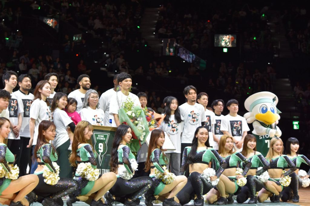「自分にとってすごく特別な日にスタートで出してもらい、チームが勝つことができてよかった」と試合を振り返った谷選手。試合後の引退セレモニーでは「15年間、本当に走り続けてこれたのは、ファンの皆さんの声援があったからだと心から感謝している」「苦しいシーズンもいっぱいあったが、それでも今、振り返ると、バスケットが仕事というのは本当に幸せで、こんな幸せな競技人生を送れたのは本当にありがたいことであり、皆さんのおかげ」と、チームメイト、関係者、ファン・ブースター、そして家族に感謝を伝えていた。さらに、「まだシーズンは続くので、これから神戸一丸となってプレーオフを絶対勝ち抜きましょう」と、最後のB2優勝に意欲を燃やしていた。