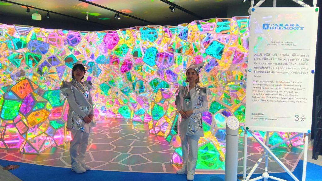 タカラベルモントは1970年、2025年の万博に参加。2025年は美容と医療が融合した「ミライのヘルスケアサロン」をかなえる「真の美しさとは何か」を問いかけた。