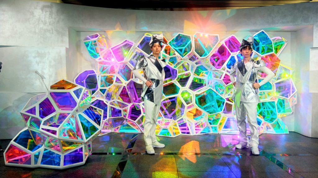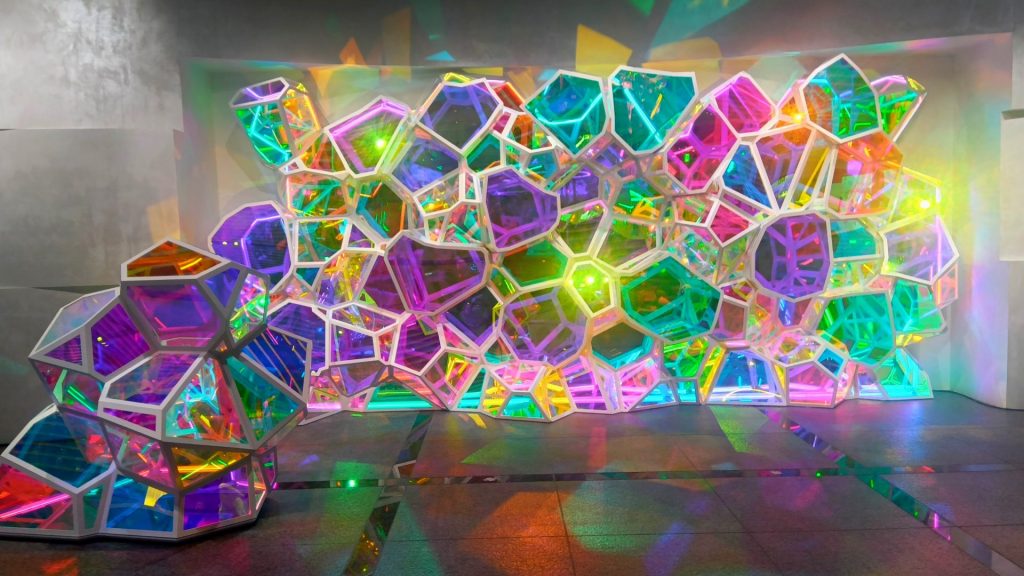 展示ブースでは、カラフルな374個の多面体を組み合わせた立体造形が輝いていた。