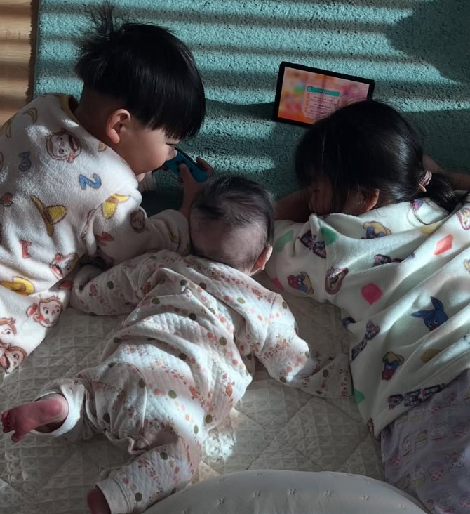 動画を撮影していたママ(@kazufam.kidslife)に話を聞きました。たいが君、うーちゃん、8歳の長女ちゃんの3人のお子さんがいます。