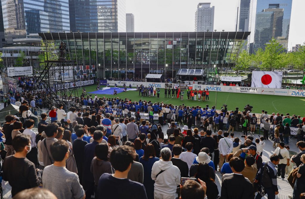 ブラインドサッカー・アジア選手権 男子は日本が準優勝 大阪駅前での大会は盛り上がり見せる 2026/04/28 (提供:鰐部春雄/日本ブラインドサッカー協会) Prev 1/2 Next 記事を読む 関連記事 ブラインドサッカー日本代表、アジア選手権で女子が優勝 男子は初陣で白星 大阪駅前で開催 2026/04/20 大阪駅前で熱戦! ブラインドサッカー・アジア選手権が開幕 日本代表、男女アベック優勝に期待 2026/04/16 「パラスポーツをもっとエンタメに!」“盲目の漫談家”濱田祐太郎と学ぶパラスポーツのいろは 2020/07/24 パラアスリートの思い「障がい者やパラスポーツを自然なものとして受け入れてもらえれば」 2021/08/12 電動車椅子サッカーを6年かけて描いた映画『蹴る』 中村監督が思いを語る 2019/05/31