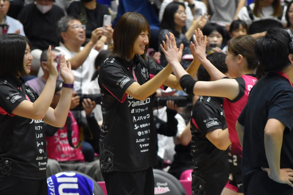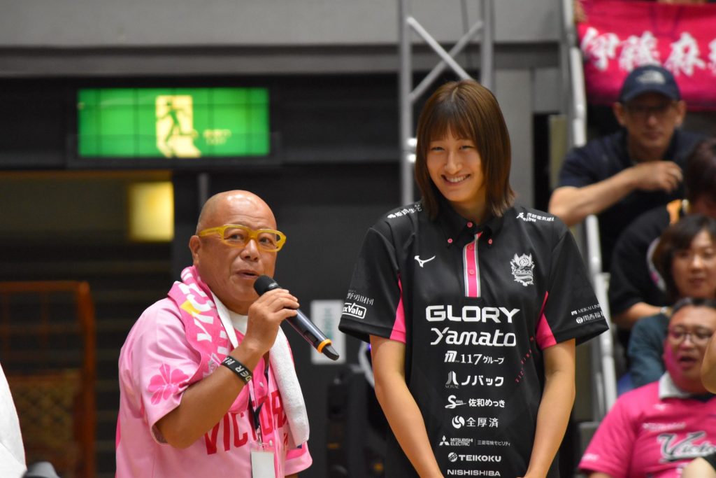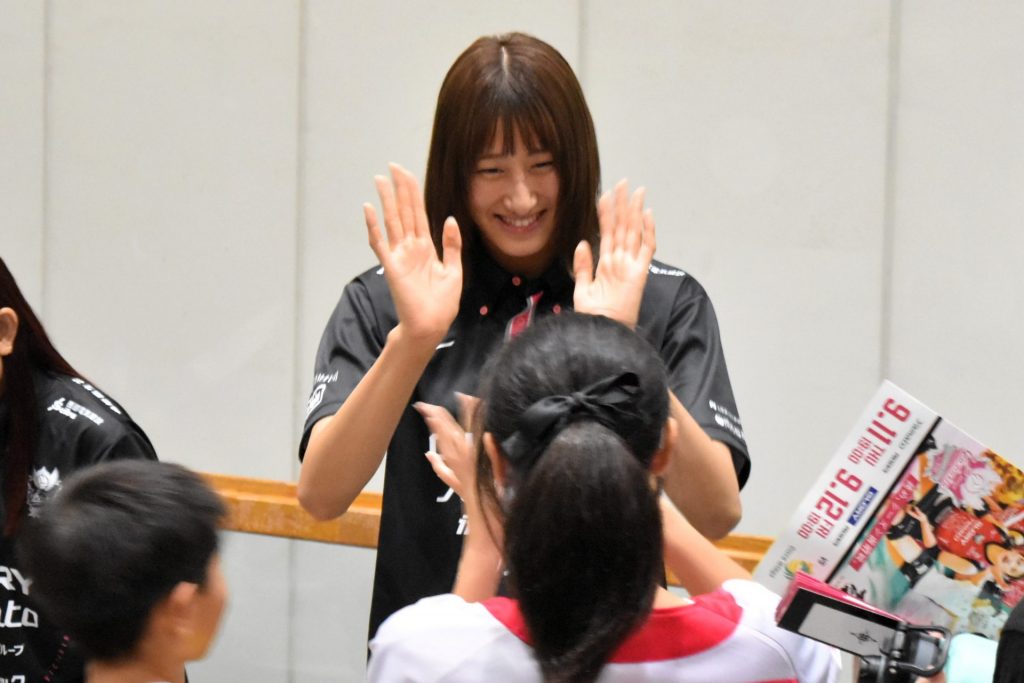 この日の夜には、ヴィクトリーナのプレシーズンマッチにも顔を出し、ともに戦ったチームメイトと再会。ファンの前でのあいさつの際は、「ヴィクトリーナ姫路でも全日本でも成長できたので、ドイツに行っても、この成長してきたことをさらにパワーアップさせて、(また姫路に)戻って来られるように頑張ります! ぜひドイツにも来てください!」と、笑顔で活躍を誓っていました。