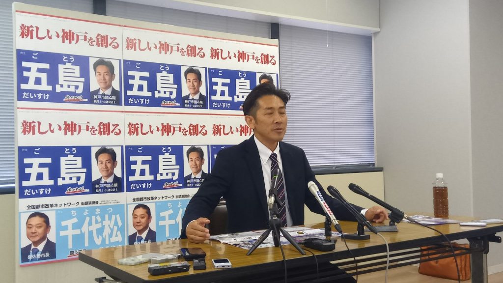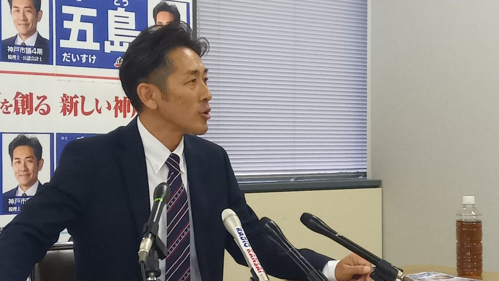 任期満了に伴う神戸市長選挙(10月12日告示・26日投開票)に無所属で出馬を表明している元神戸市議・五島大亮氏(48)が10月3日、公約を発表した。