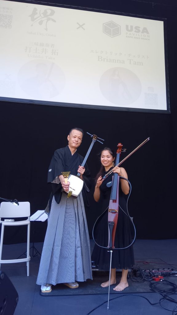 三味線の“わび・さび”と、エレクトリック・チェロの現代的な音の融合が10月8日、大阪・関西万博のアメリカパビリオンで実現した。