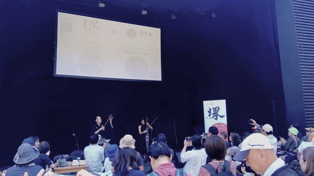 アメリカパビリオンのテーマは、「共創」。この日、三味線発祥の地、大阪府堺市が伝統文化の魅力と日本独自の美意識“わび・さび”を発信した。