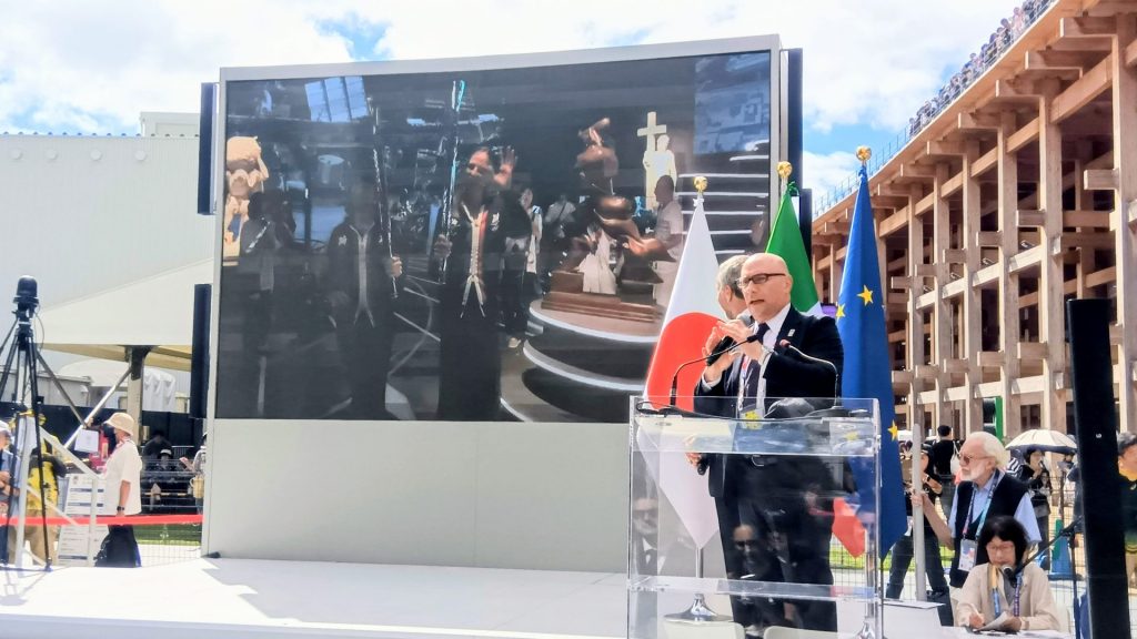大阪・関西万博が閉幕した10月13日、トップクラスの人気を誇ったイタリアパビリオン前に、一日限定の特設スケートリンクが登場した。