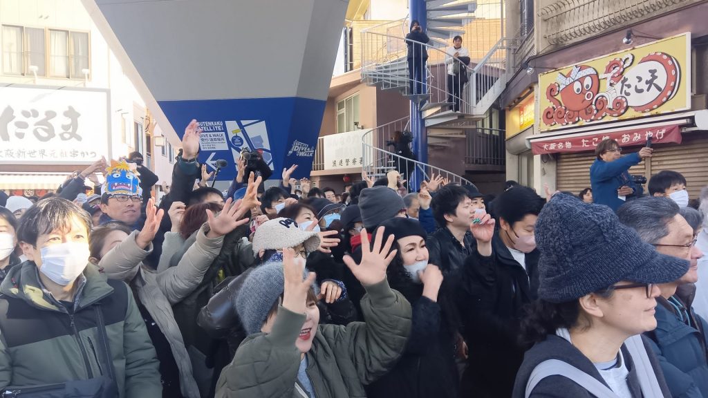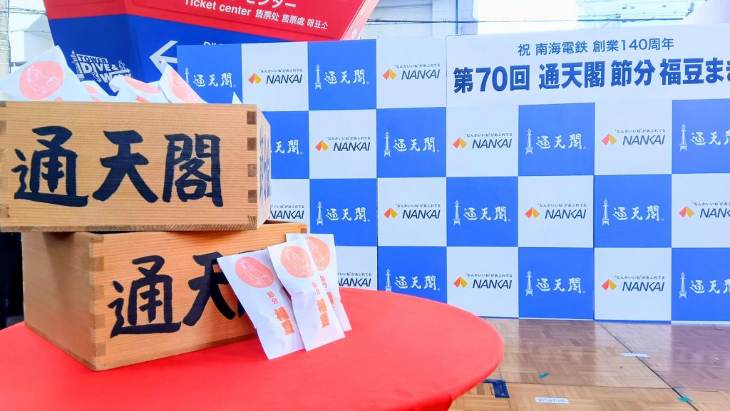 大阪・新世界のシンボル、通天閣の「節分福豆まき」か1日に開かれた。通天閣では例年、節分の前に“ひと足早く”邪気を払う。