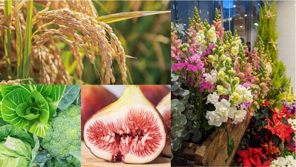 北区・西区では野菜や果物、花、酒米が育ち、海側ではしらすや海苔など